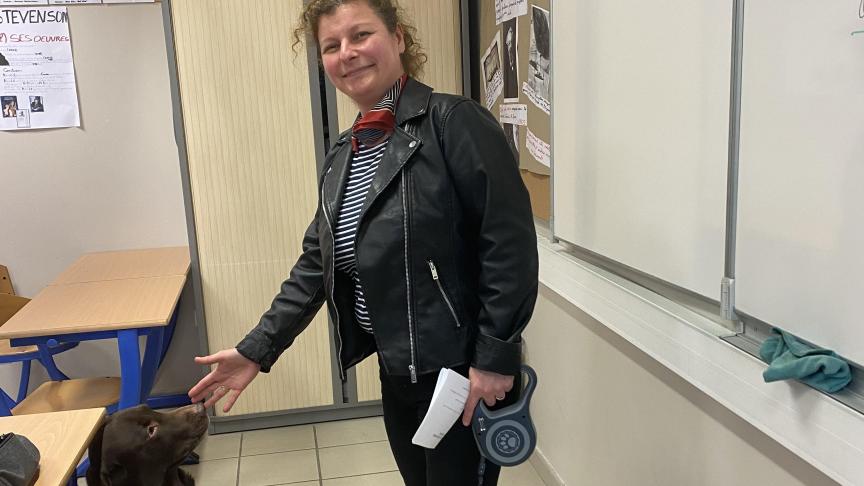 Pour davantage d’informations sur le parcours de Mme Picavez et de Neville, notamment la genèse du projet, vous pouvez lire ce complément : https://www.lavoixdunord.fr/1319520/article/2023-04-23/un-chien-de-soutien-emotionnel-au-college-malraux-lambres-lez-douai